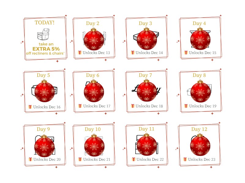 ^Offer valid in-store and online on December 12, 2025, only. Discount can be combined with Holiday Savings Event promotion. Discount not valid on clearance, closeouts, floor samples, doorbusters, price saver alerts, Power Buys, Power Buy Express items, Fjords®, or August Haven. Offers do not apply to previous purchases or on any other category of merchandise. Custom orders require a 20% deposit.