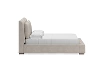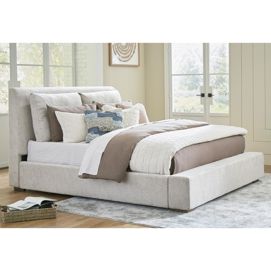 This king upholstered bed sits comfortably at the intersection of modern lodge and farmhouse aesthetics. Your warm and welcoming disposition is reflected in its subtly tapered headboard and all-over upholstery. Even with its poise, the bed remains practical. Loose pillows on the headboard keep comfort a priority as you lay back to read or watch TV, defining your bedroom with reliable function and style.