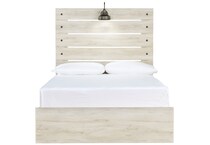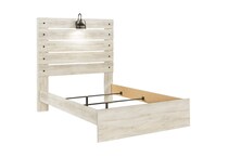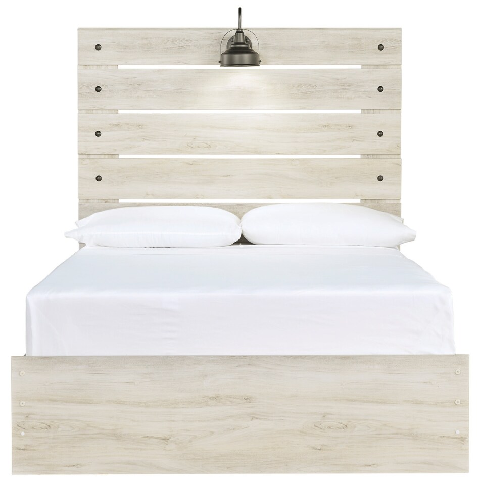 What a delightful take on rustic industrial style. Whether modern loft or modern farmhouse, this full panel bed makes itself at home. The wispy whitewash palette enhances without covering the grain for that weathered look you crave. Love to read in bed? You're sure to find the retro-chic light sconces and USB plug-ins on the open-slat style headboard such a bright idea.
