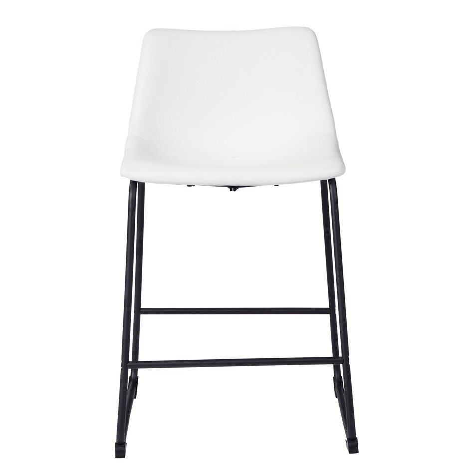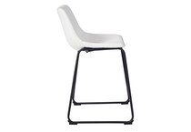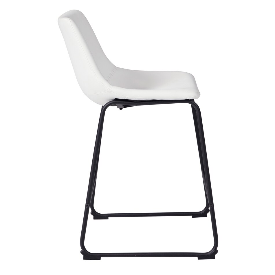 With its distinctive contoured bucket seat and tubular metal base, this bar stool serves up a fresh twist on mid-century inspired style. Contrasting white faux leather upholstery adds to the aesthetic. What a timeless look for eat-in kitchens and casually cool dining rooms.