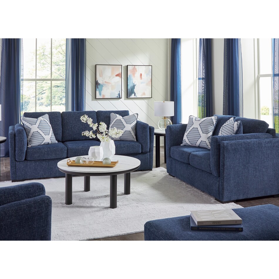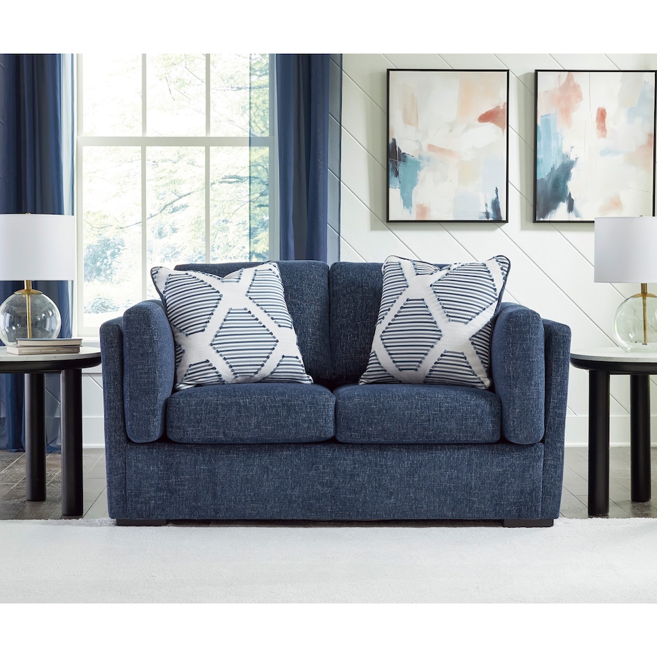 Casual contemporary style, meet carefree lounging. With this Loveseat, you don’t need to sweat the small stuff. Thanks to its a fresh navy hue, you can stay right on trend when you relax solo or with guests. Arm bolster pillows keep you extra comfy. Time for a touch-up? Machine-washable Next-Gen Nuvella™ covers make upkeep a breeze.