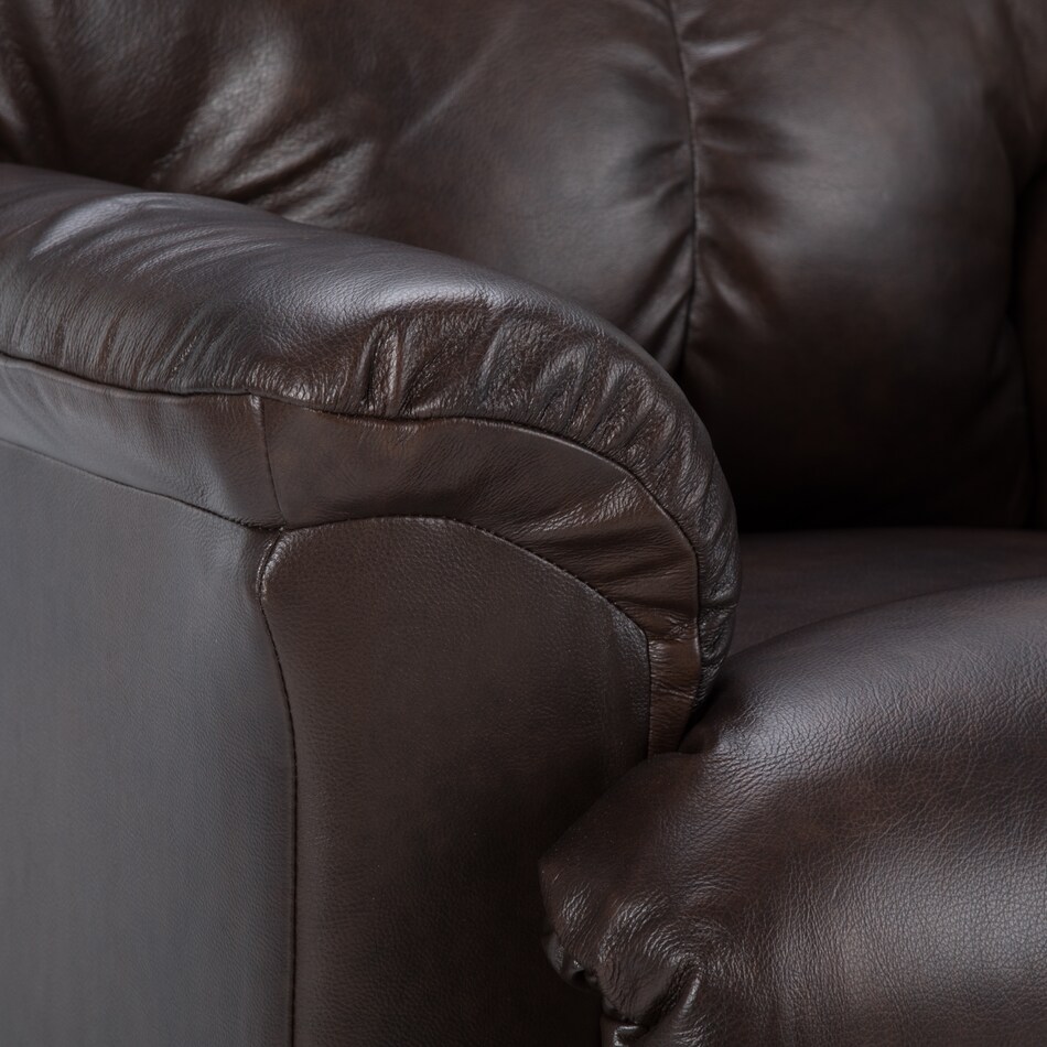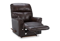 The Reed leather rocker recliner from La-Z-Boy® is a casual family favorite that's sure to become the destination for comfort in any home. It features ultra-plush padding on the flared arms and back, plus a one-piece chaise seat and legrest that create a continuous zone of comfort in the reclining position.When you're not reclining, it's a relaxing rocker with a smooth, graceful motion.