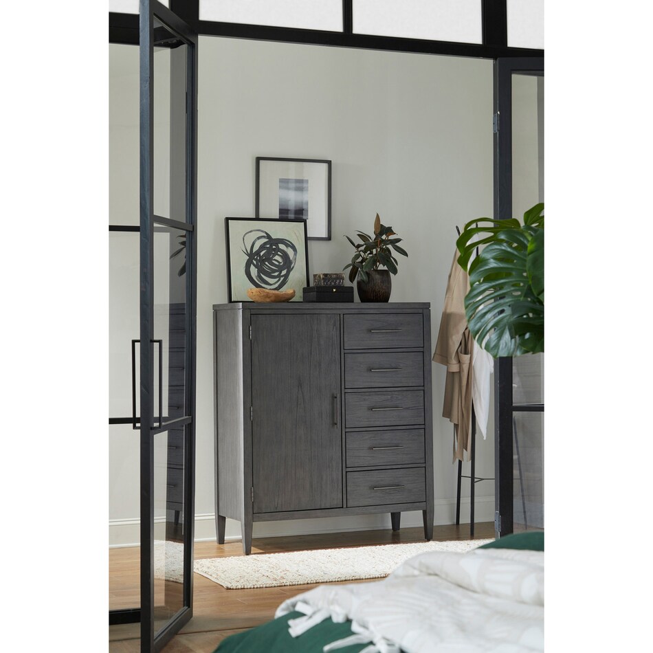 Riverview offers a clean, transitional style in a gorgeous Urbane Grey finish with generously sized contemporary bar pull hardware. Enjoy functional features throughout such as built-in power and charging ports, felt lined drawers, durable performance fabric and so much more.