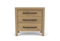 The Davin 3-Drawer Nightstand showcases a simple, yet stylish design that is crafted with attention to detail. The Pale Oak finish highlights the natural beauty and texture of the pin knotty oak. Custom oversized bar pulls add a sleek and contemporary feel to this nightstand.