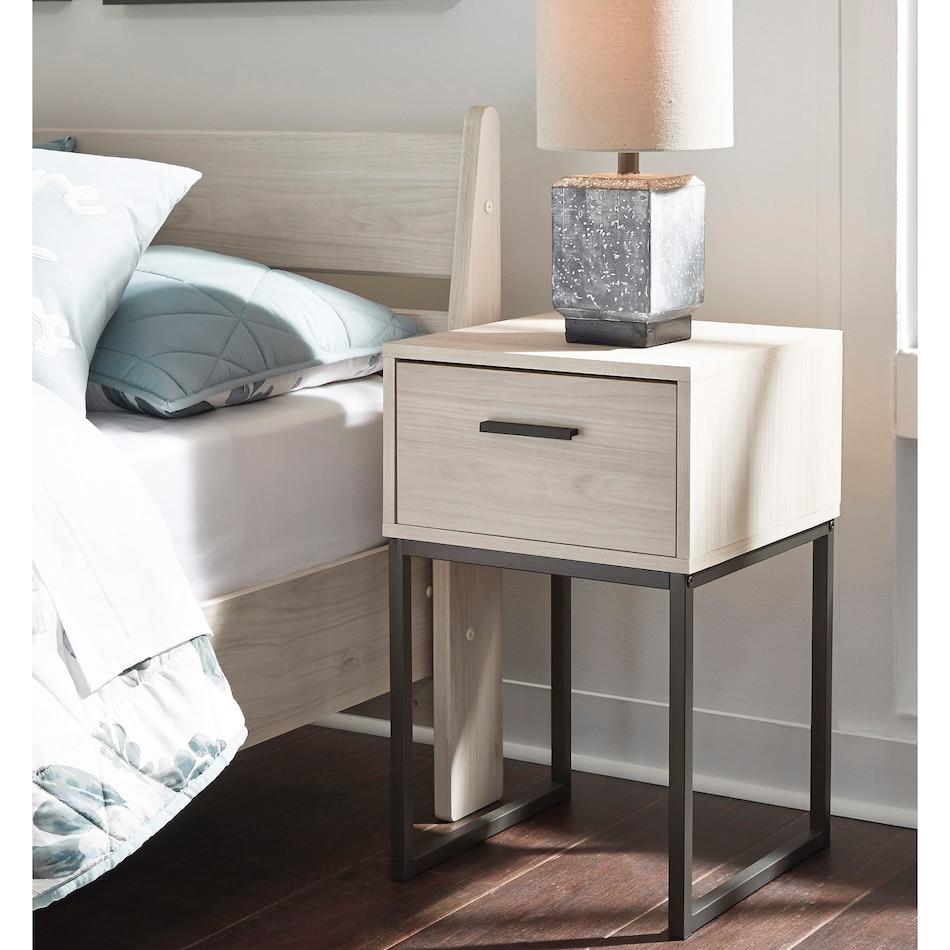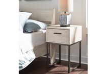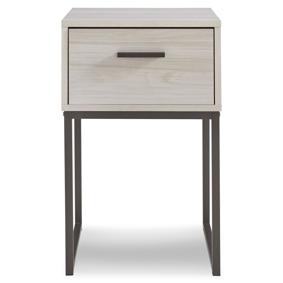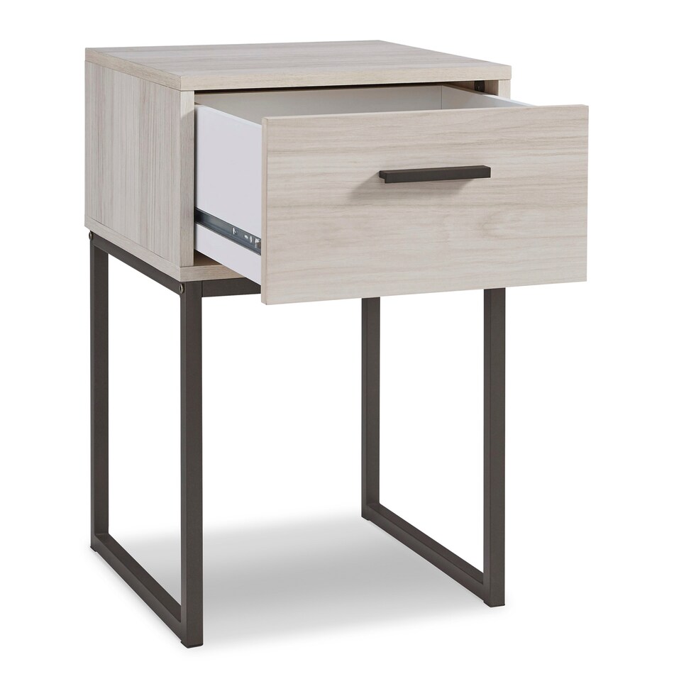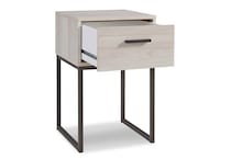 Light and bright, this nightstand is inspired by chic design. A light natural finish over replicated oak grain offers an authentic touch to this so-cool piece. It beautifully blends the hues of natural living with the edginess of your modern lifestyle.