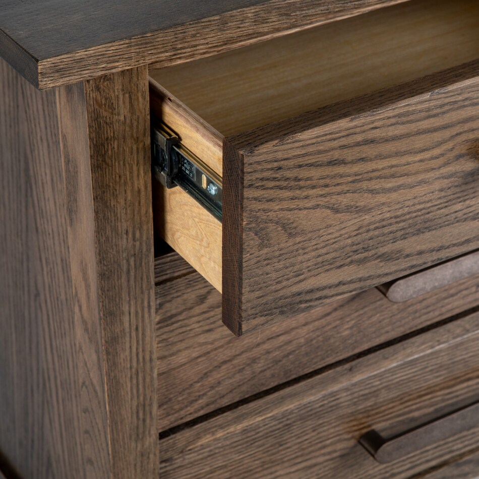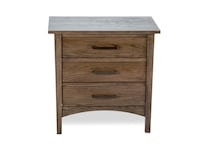 The Middleton II 3-Drawer Nightstand is made in Wisconsin from solid wood with a stained finish, A slight curve at the bottom adds a unique finishing touch. Custom order in other wood / stain and hardware options.