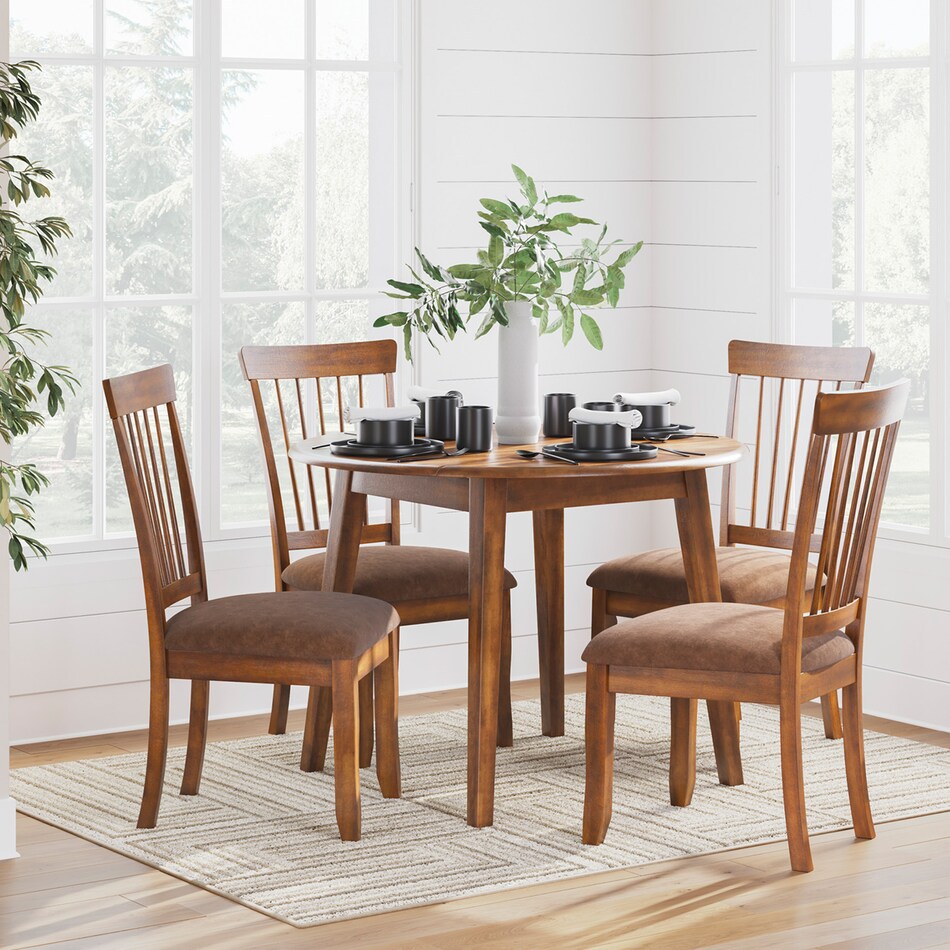 The rich country style of this dining room set reflects back to the days when beautifully crafted furniture was made by hand to enhance the look of your home. The rich rustic look creates a warm, inviting atmosphere for any dining experience.