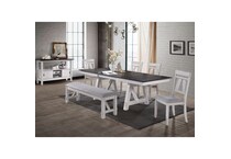 The Cora Dining Collection is a stylish and functional addition to any dining space. Made from rubberwood solids and mindy veneers, the Cora Dining Collection is both durable and stylish. The table features a two-tone finish and comes with two 14" self-storing leaves, allowing you to easily adjust the size of the table to suit your needs. The chairs and bench come with 85% polyester and 15% cotton cushions, providing comfort and support during long meals. Overall, the Cora Dining Collection is a versatile and stylish choice for any home. Its durable construction and adjustable table make it perfect for both formal and casual meals.