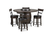 Our Barrel Pub Table has a convenient Lazy Susan and hidden storage in its stylish wine barrel base. Constructed from New Zealand pine solids and veneers, Barrel features rough sawn distressing and a tobacco leaf finish.