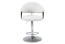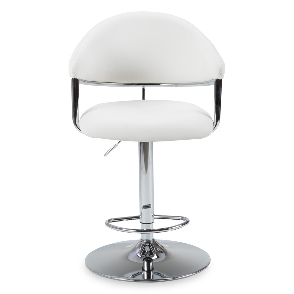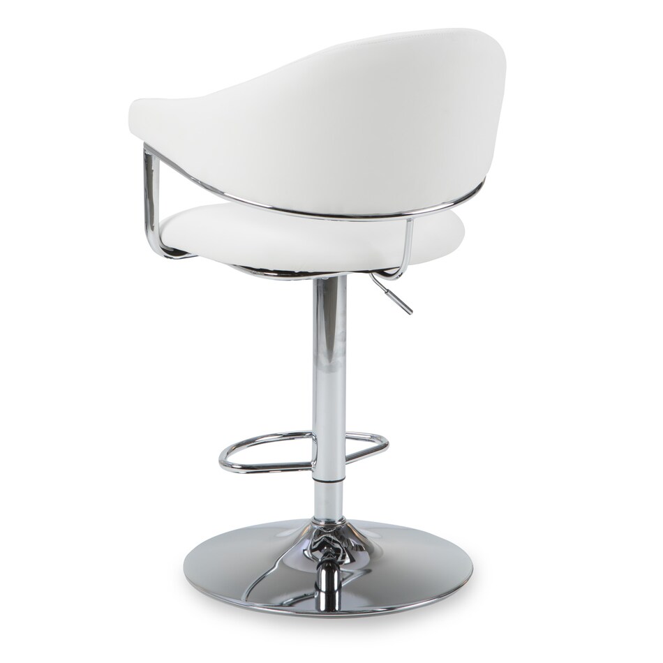 Our Airstream Gas Lift Stool has a sleek chrome finish and polyurethane upholstery on the ergonomically contoured seat and back. Easily adjust the height from counter to bar height.