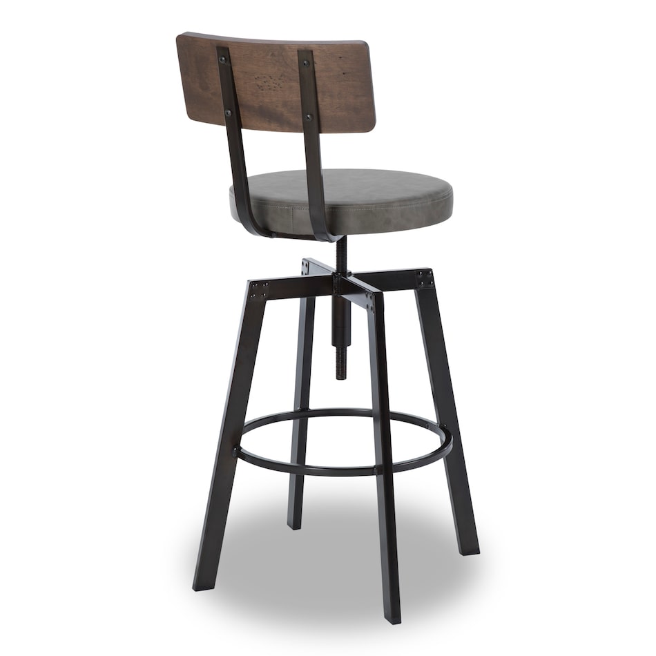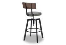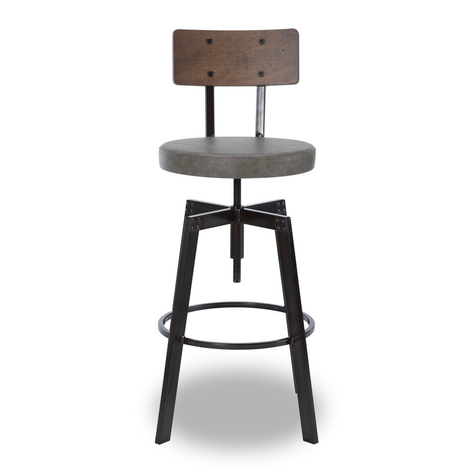 This stool brings the ultimate industrial look to your home with distressed materials, clean lines, and a minimalist aesthetic. No frills here. Just a harmonious contrast created from clean metal details that play up the warmth of aged wood. You'll love the base with its open-ended screw and riveted plates.