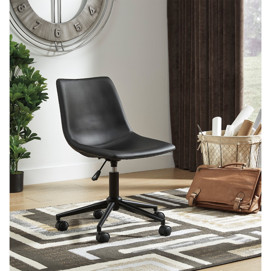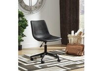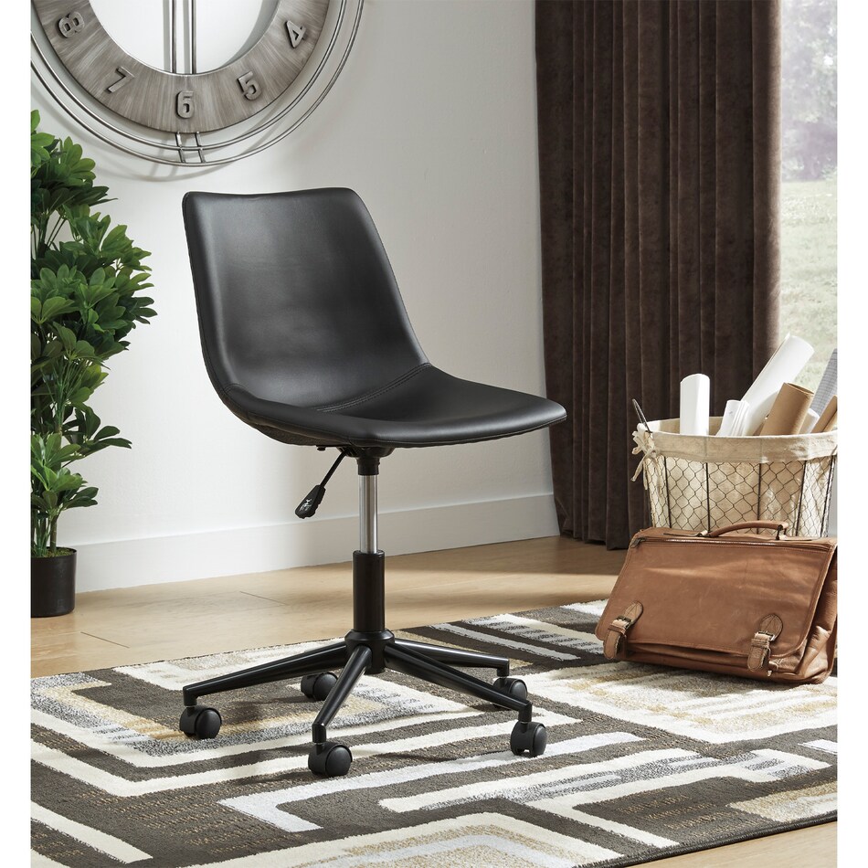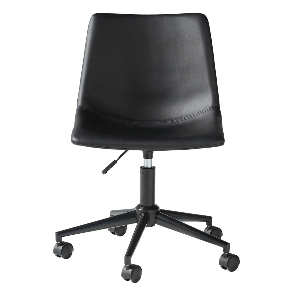 Working an ultra-cool sense of style just got a whole lot easier thanks to this swivel home office desk chair. Upholstered bucket seat covered in a black faux leather merges mid-century flair with modern comfort.