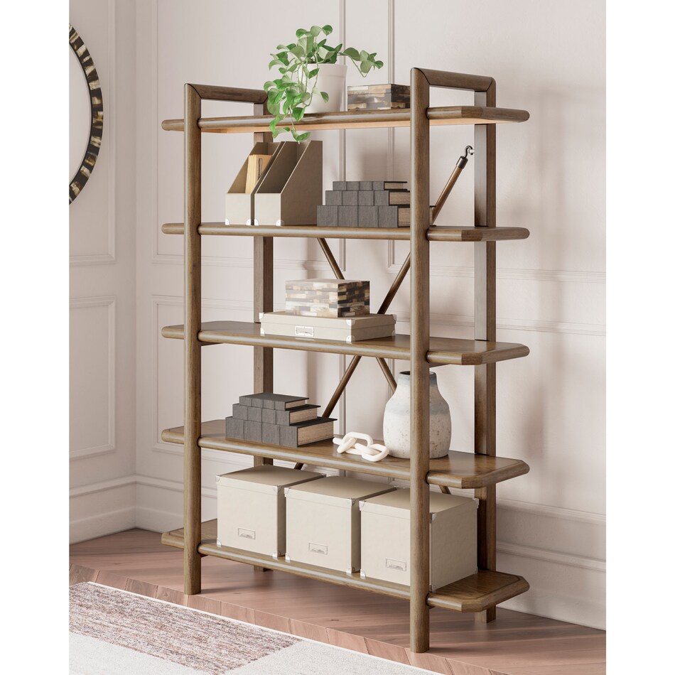 Give your mid-century modern decor that finishing touch with this bookcase. Spacious shelves, thick solid wood frames and a unique back brace enhance the design with stunning style. This bookcase takes minimalism to the max.