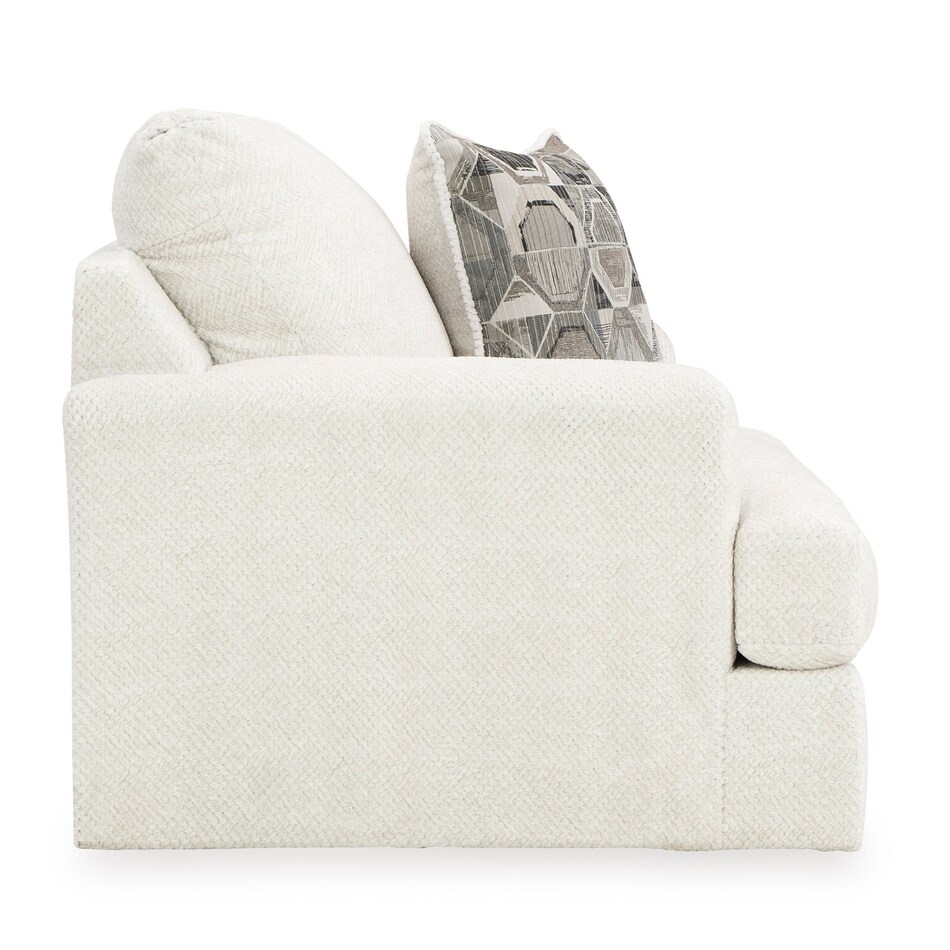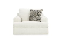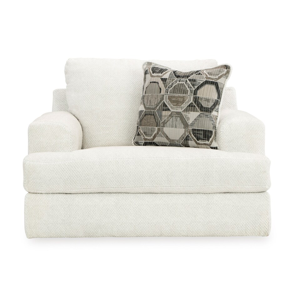 Craving casual refinement? This oversized chair has you covered. The decidedly contemporary frame cradles sizable cushions in an ultra-soft neutral hue, lightening the mood in your living room with simple style and everyday comfort. A geometric accent pillow perfects the chic-meets-cozy vibe.