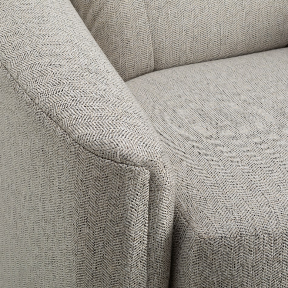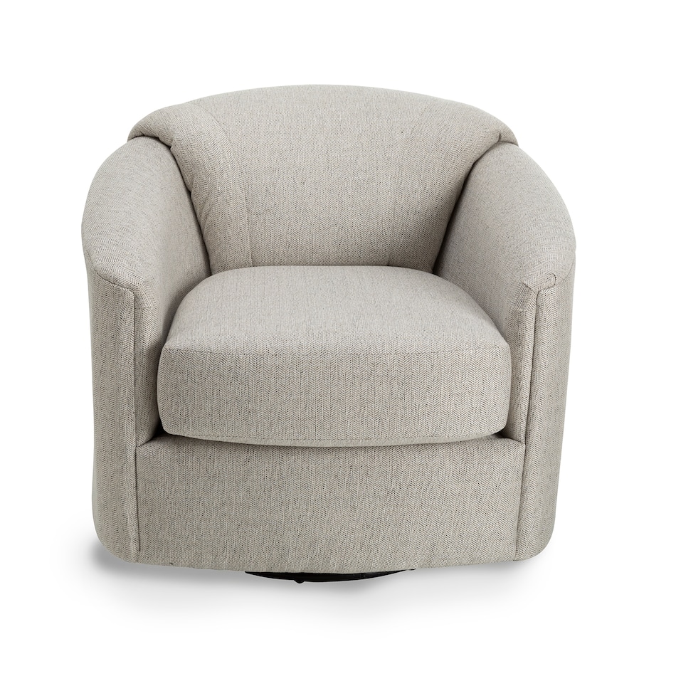 The Eloise Swivel Glider Chair is sure to never go out of style. Featuring roll arms, a swivel base, and fabric that is tested for heavy-duty wear, this customizable swivel chair can be enjoyed for many years to come.