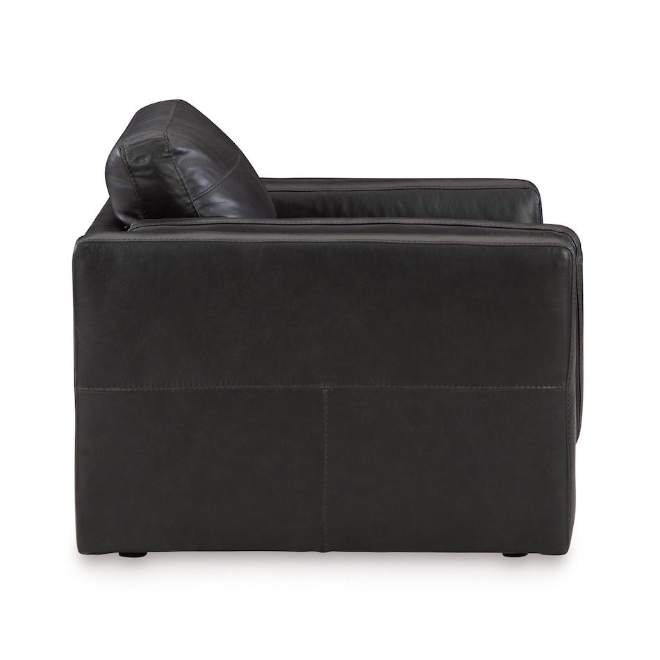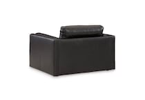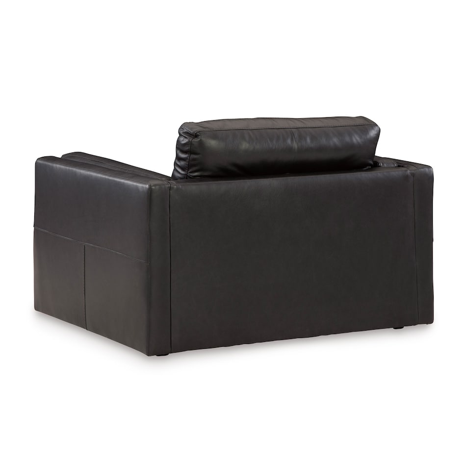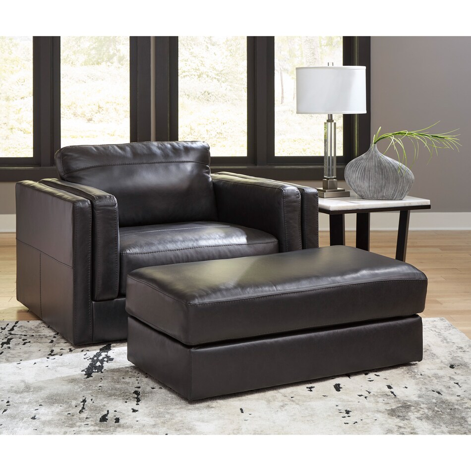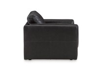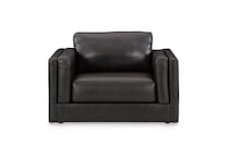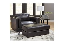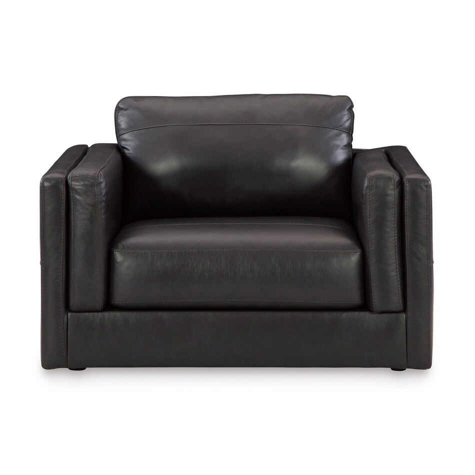 Keen on crisp, contemporary design? Adore the pleasure of leather? Look no further. This oversized chair satisfies on every level. Richly textured and decadently supple, the plush cushions are wrapped with combination leather and faux leather upholstery in an on-trend onyx tone. Sleek double-padded arms and a low, clean-lined profile complete the chair's simply chic appeal.