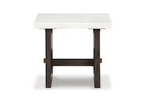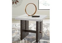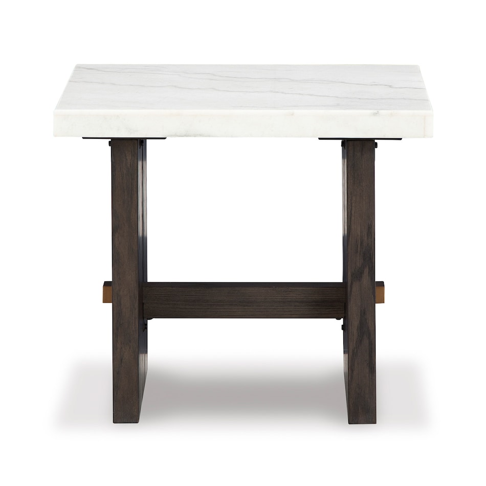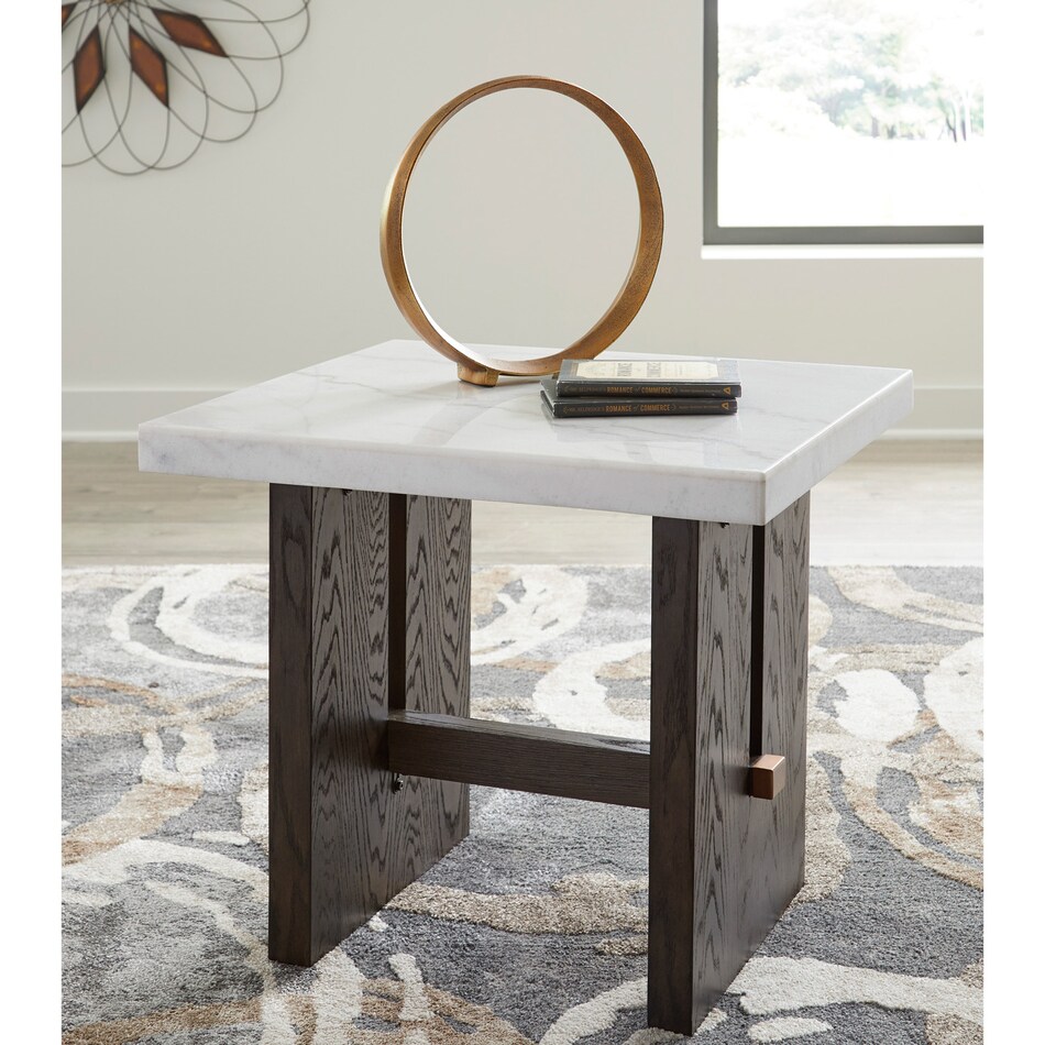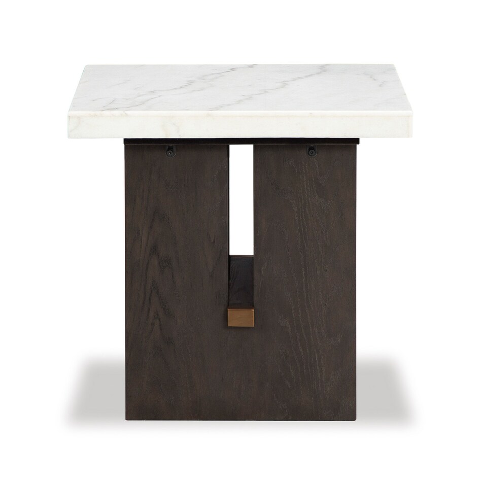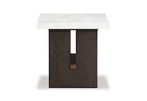 Dressed to thrill, this simply stunning end table offers a high-design look at a down-to-earth price. Ultra-sleek lines are accentuated with a dark waxy brown oak finish that's so easy on the eyes. Clean-lined and modern, the plinth base and natural marble tabletop showcase quality craftsmanship and attention to detail. This table is the perfect sofa companion for a living room or family space, with a timeless look that's made to last.