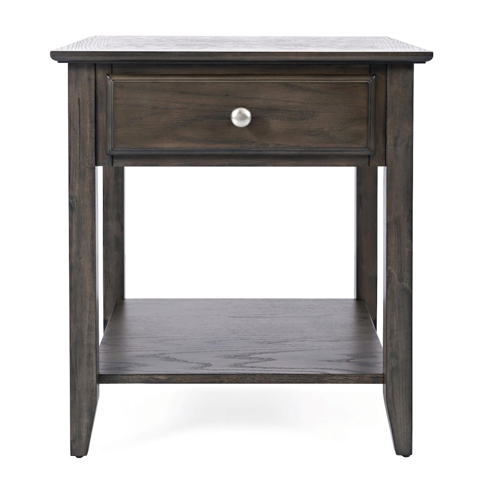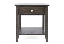 Our Corina End Table is both functional and stylish. One convenient storage drawer keeps remotes, reading glasses, or coasters neatly hidden away. Silver hardware adds plenty of contrast to the dark brown finish.