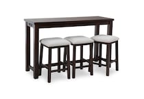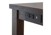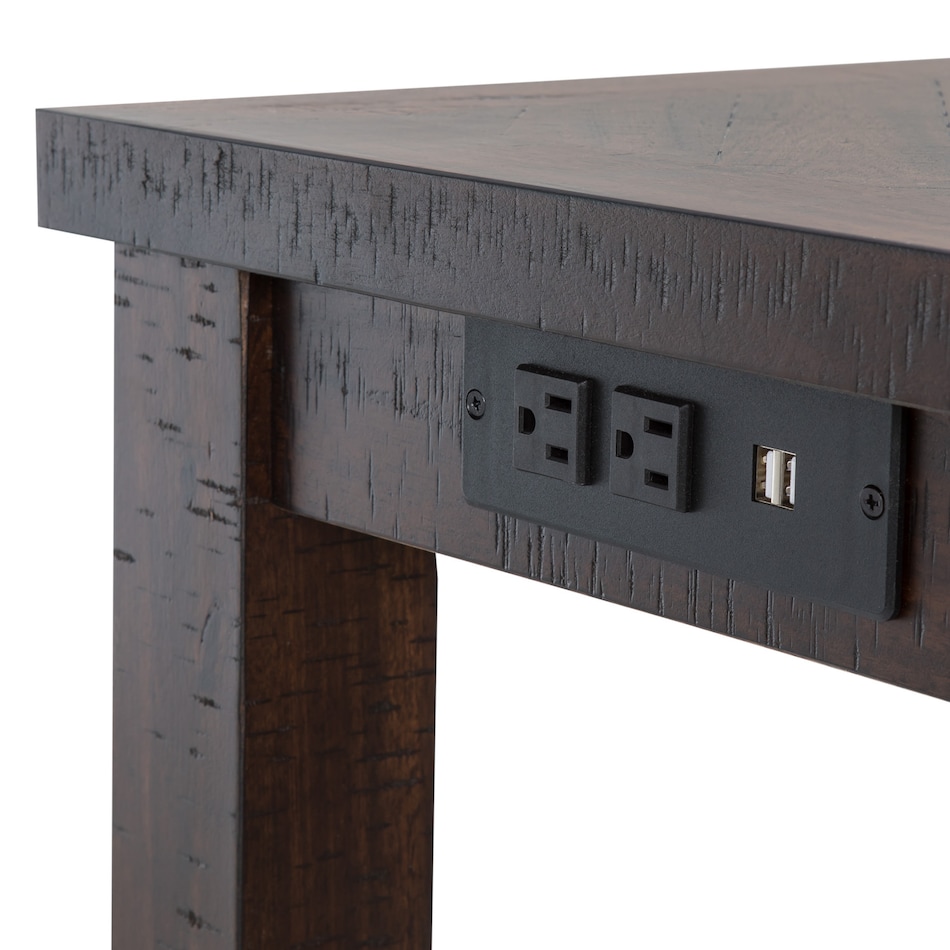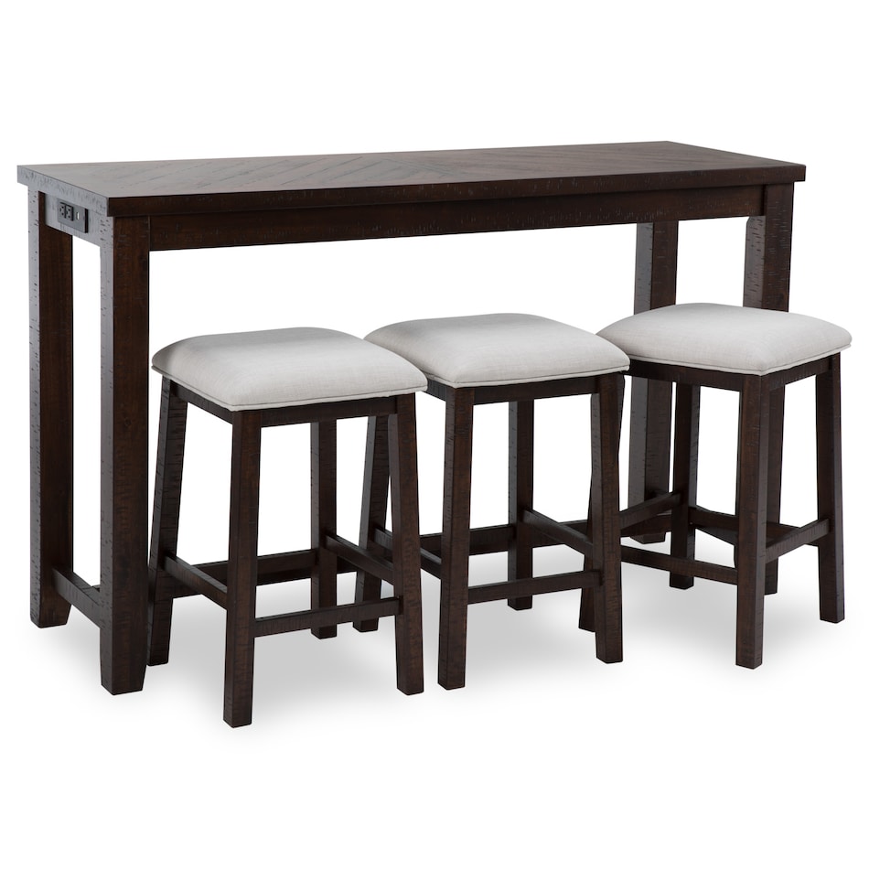Our Dasher Table with Stools has tapered, distressed legs, and a rich walnut finish. Three stools and wire management with built-in USB ports add an extra dose of convenience to this piece.