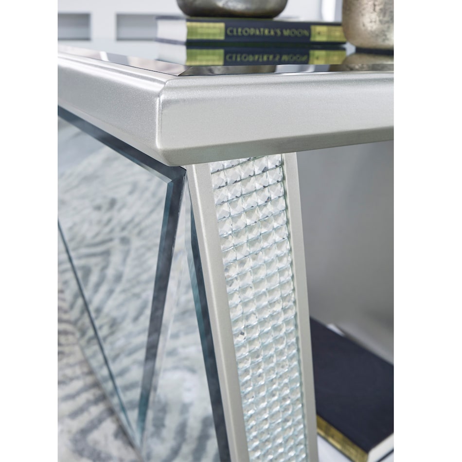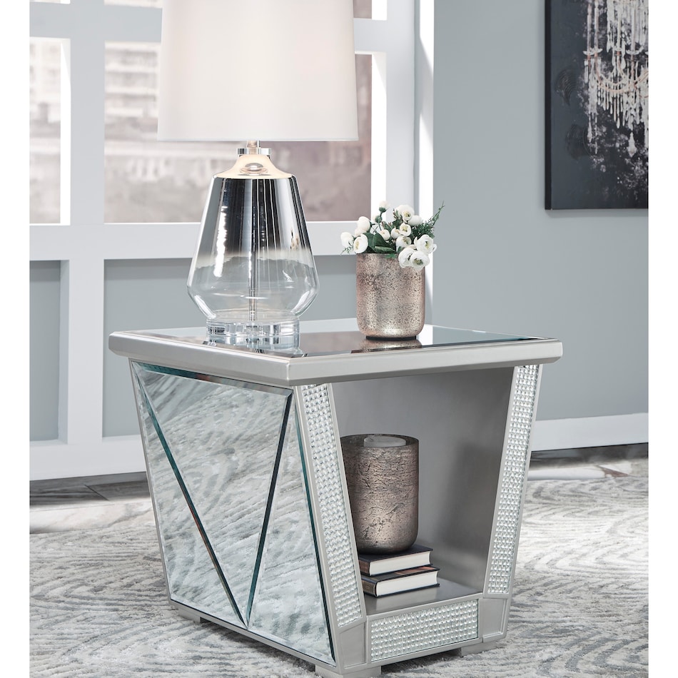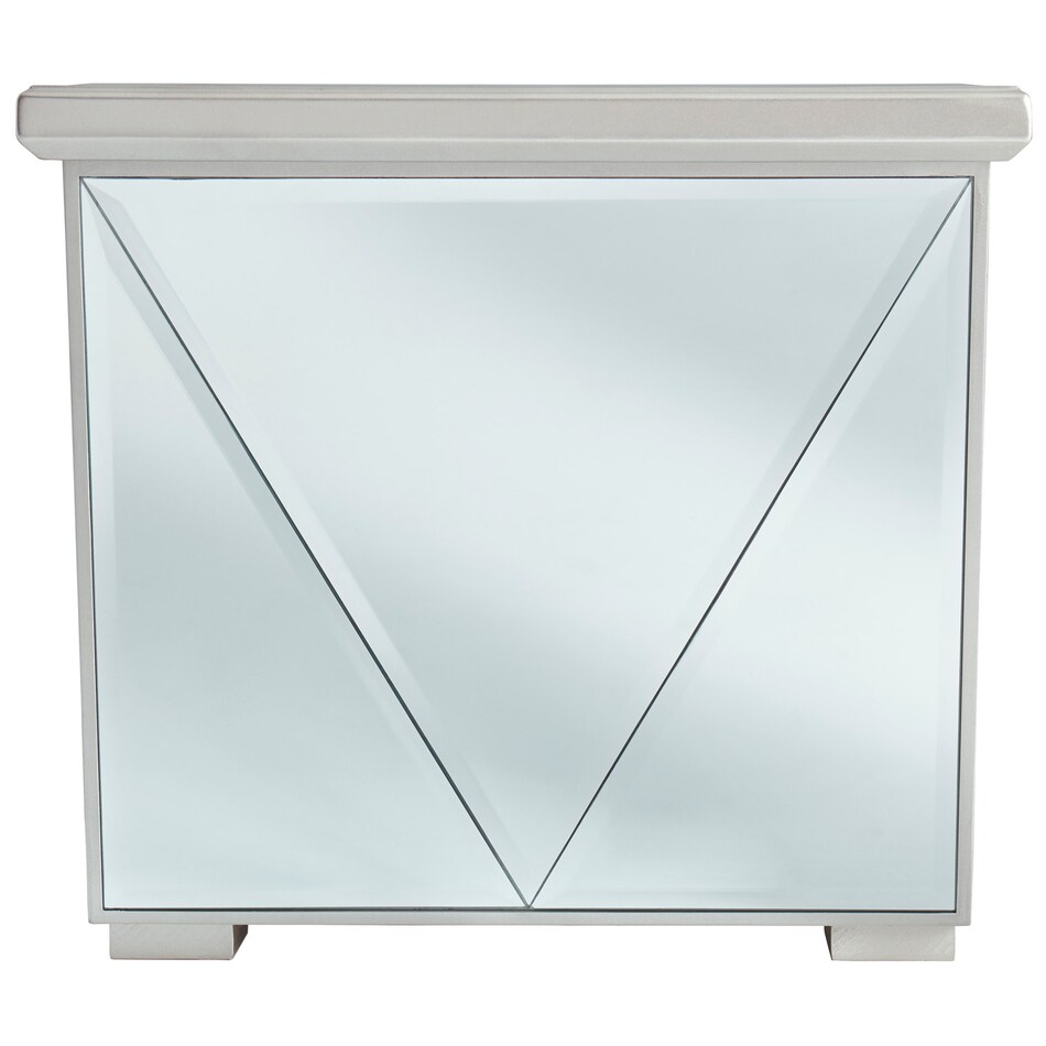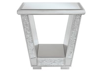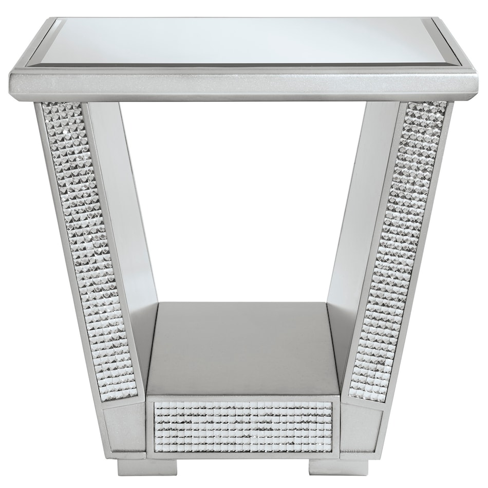 Absolutely fabulous interpretation of Hollywood regency style. This bedazzled end table is a diva in the very best sense of the word. Embellished with inset rhinestones, beveled mirrors and a sparkling silvertone finish, this table's geometric design dares to be different.