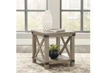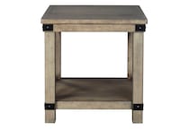 Crafted with solid pine wood treated to a weathered gray finish, this end table is rustic farmhouse living at its best. Crossbuck styling adds striking flair. Metal industrial brackets incorporate an industrial twist. This item ships for free within 72 hours if in stock and will arrive at your home via UPS or FedEx. Full, in-home assembly required by customer.