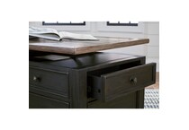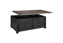Shabby chic with a hint of down home country. The Tailor Lift-Top Cocktail Table with textured black finish is all the talk of today's design world. Wood grain shows through the weathered gray-brown top in all of its earthy pleasure. Framed drawers are adorned with lovely traditional hardware. The smooth pull-out makes it easy for you to store away your belongings in style, while the lift-top transforms your space into a workstation without a hitch.
