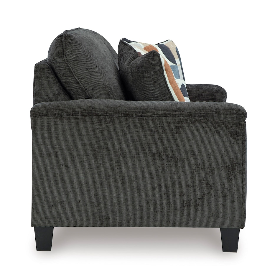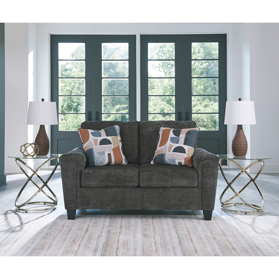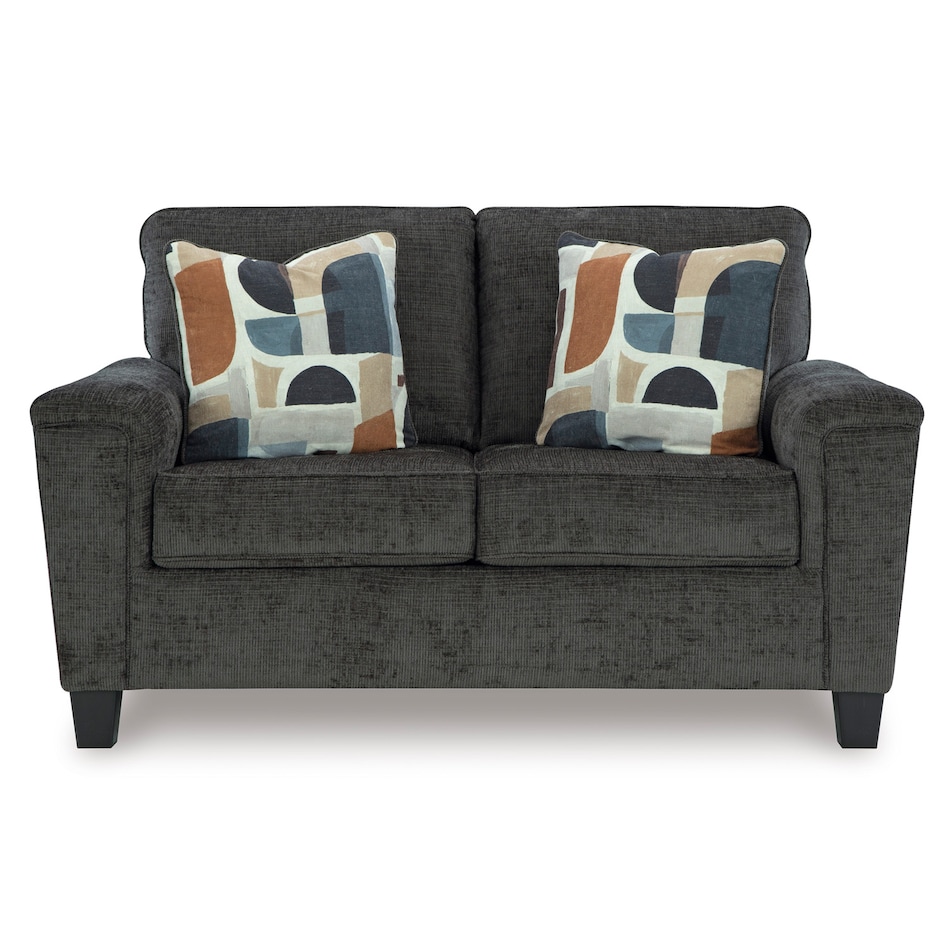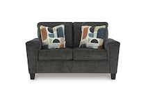 There’s something about this loveseat that’s so easy to appreciate. Maybe it’s the plush upholstery and soothing tone, eager to support your quest for total relaxation. Perhaps it's the modern flair of its simple lines, tapered legs and abstract-patterned pillows. Whatever it is that appeals to you, this is a piece you're gonna love.