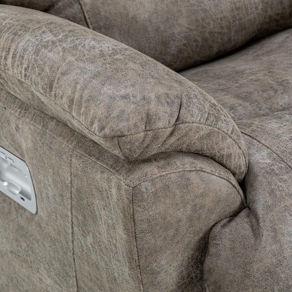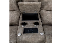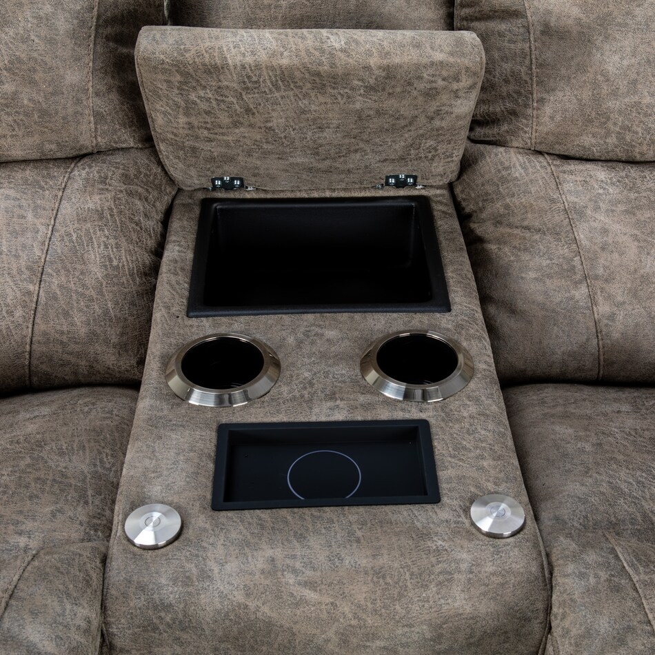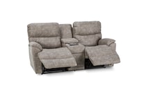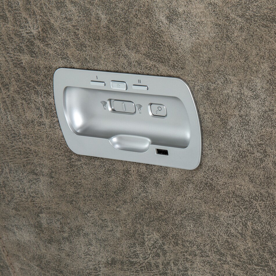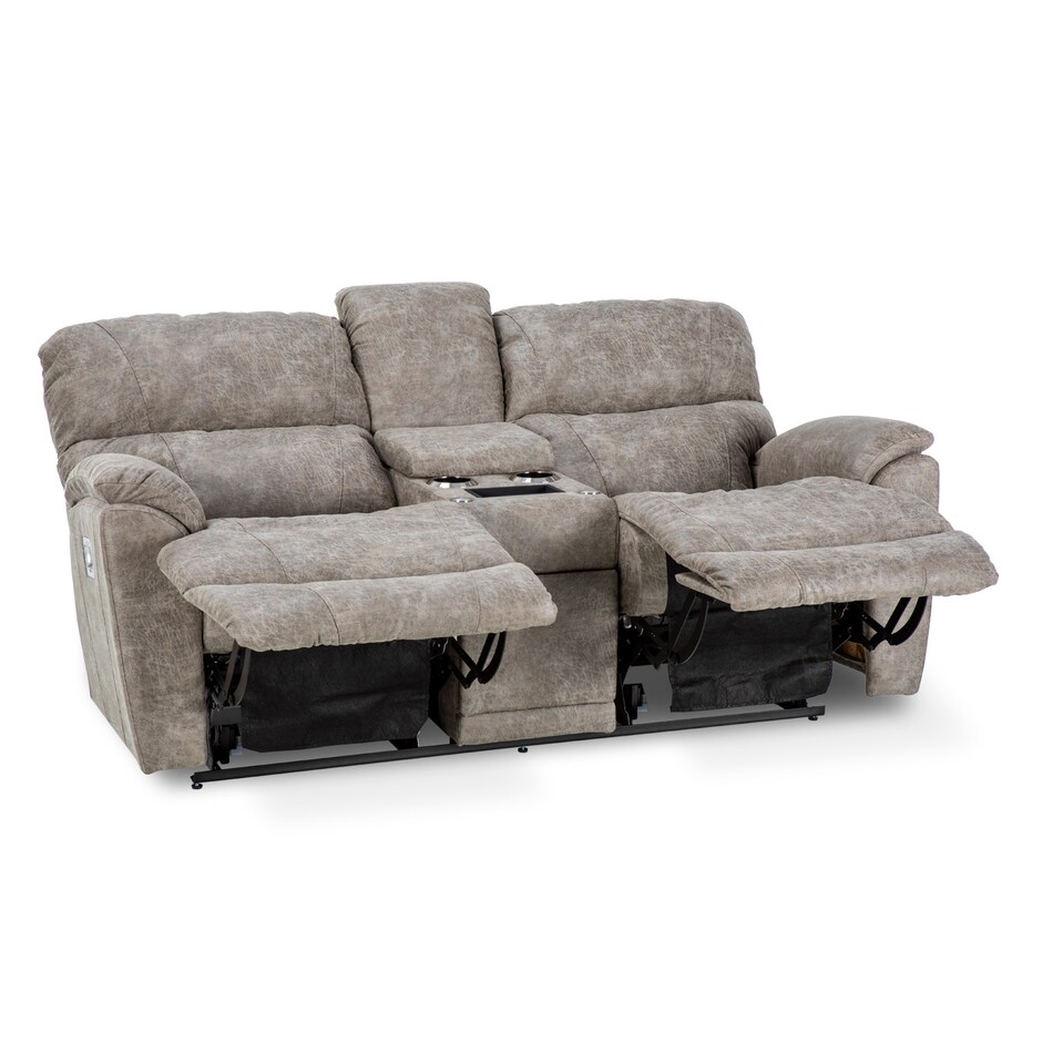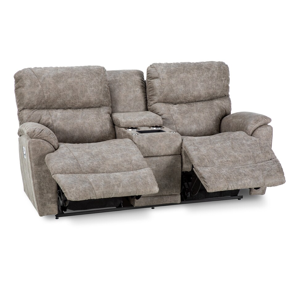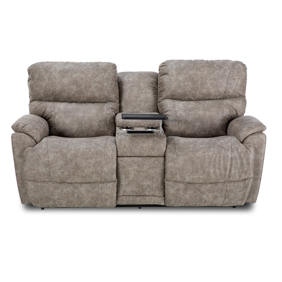 With sculpted bucket seats, dual-sided reclining power, power-tilt headrests and a convenient middle console, our Trouper II power loveseat is your ticket to comfort. Go from upright to fully reclined at the touch of a button as powered backs and chaise legrests move together to any reclining position, then find the optimal angle for your head and neck with our power-tilt headrest. A handy middle console provides hidden storage and a place to put your favorite beverage. Built-in USB ports on both right and left outside arms keep you connected, or unplug with our Go Cordless battery pack to enjoy Trouper's power features without the need for an electrical outlet. Grab the popcorn, our Trouper loveseat will handle the rest. Power console bundle upgrade adds a wireless charging tray, 2 electrical outlets, and 2 USB ports to the inside of the storage tub, 2 table ports and 1 removable table.