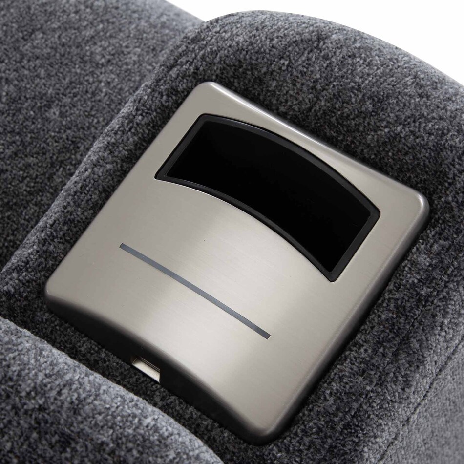 Meet the Travis Chair & a Half Recliner – where oversized comfort meets modern convenience. Immerse yourself in the luxury of power recline, while the dual storage arms keep your essentials close at hand. With a built-in cupholder, slot charger, and USB port, this recliner is not just a seat, it's your personal relaxation command center, seamlessly blending style and functionality.