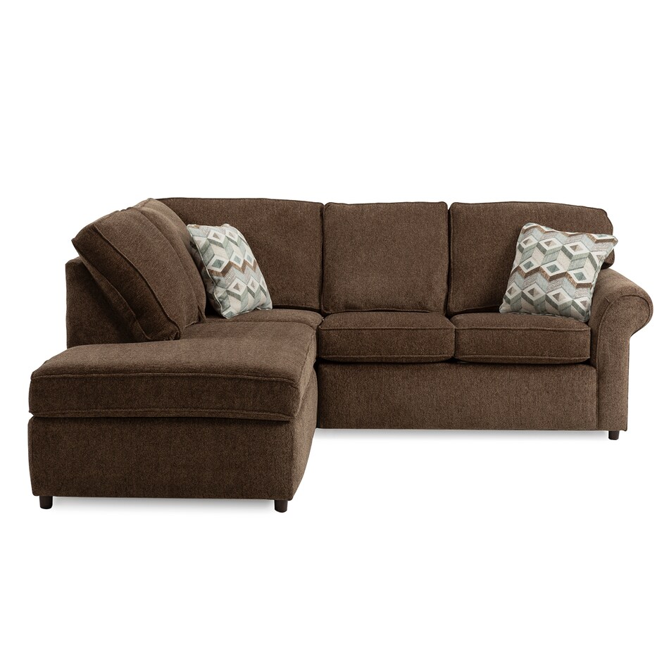 The Mirage 2-Pc. Sectional is simple, yet stylish. One side features a winged arm, while the other side provides extra leg space to sit back and relax. Custom order in your choice of fabric to create your perfect sectional.