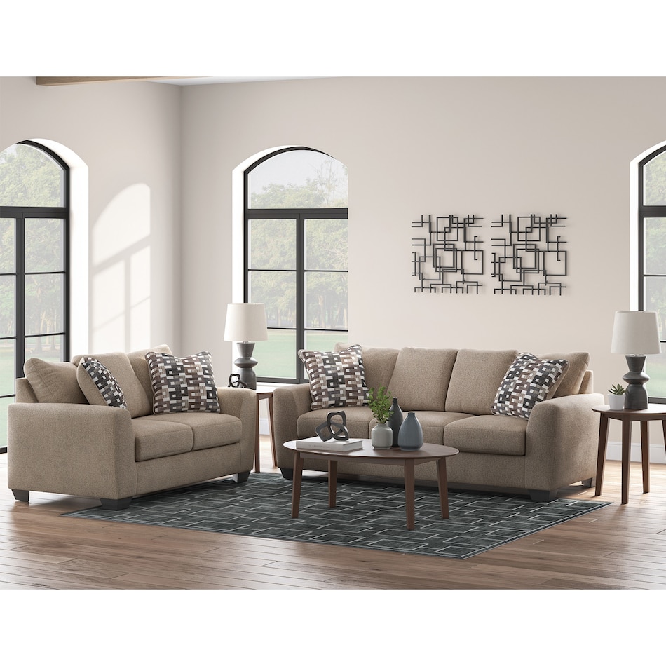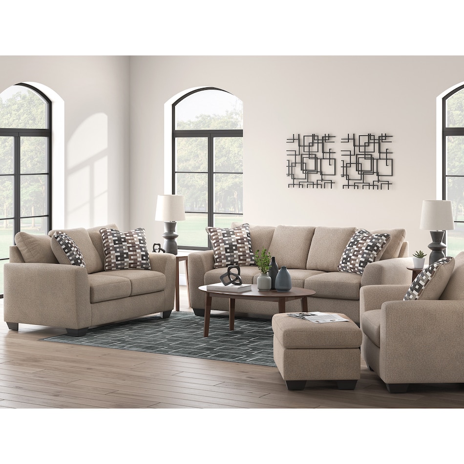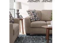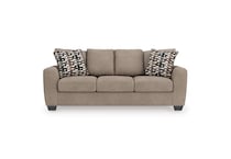 Transitional and right on trend. This sofa’s upholstery is a delightful change from the ordinary, with hints of soft brown giving the gray hue added depth. It’s punctuated with chic accent pillows in an eye-catching, stylized stripe design. Whether you're hosting friends and family or relaxing solo, this sofa invites homey, comfortable character into your space.
