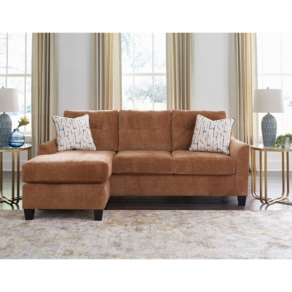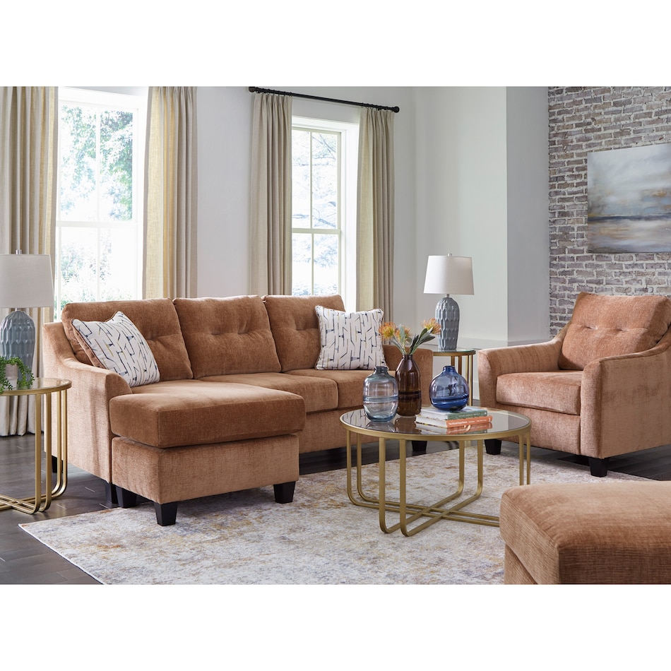 Urban contemporary meets mid century (with a pop of trend-right color) in this sofa chaise. Supremely soft upholstery, teeming with luster and movement, finesses the piece with just the right touch. Gently flared arms and tufted back cushions let you bask in the glow of superior style. Can you think of a better spot to entertain friends or spread out in sheer comfort? We’ll wait.