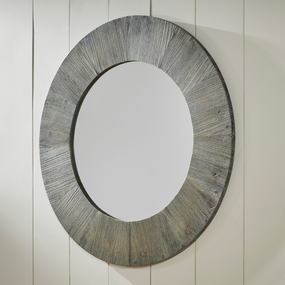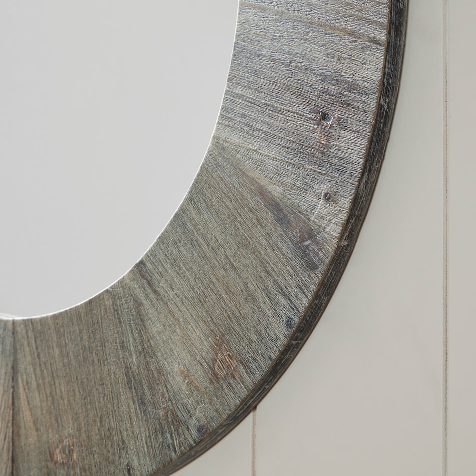 Go full circle with this wall-mounted mirror. A lovely round frame with distressed detailing brings nature-inspired style into your home. Whether it's used to brighten your interior or for one last glimpse before you leave the house, this accent is a useful and decorative accessory.